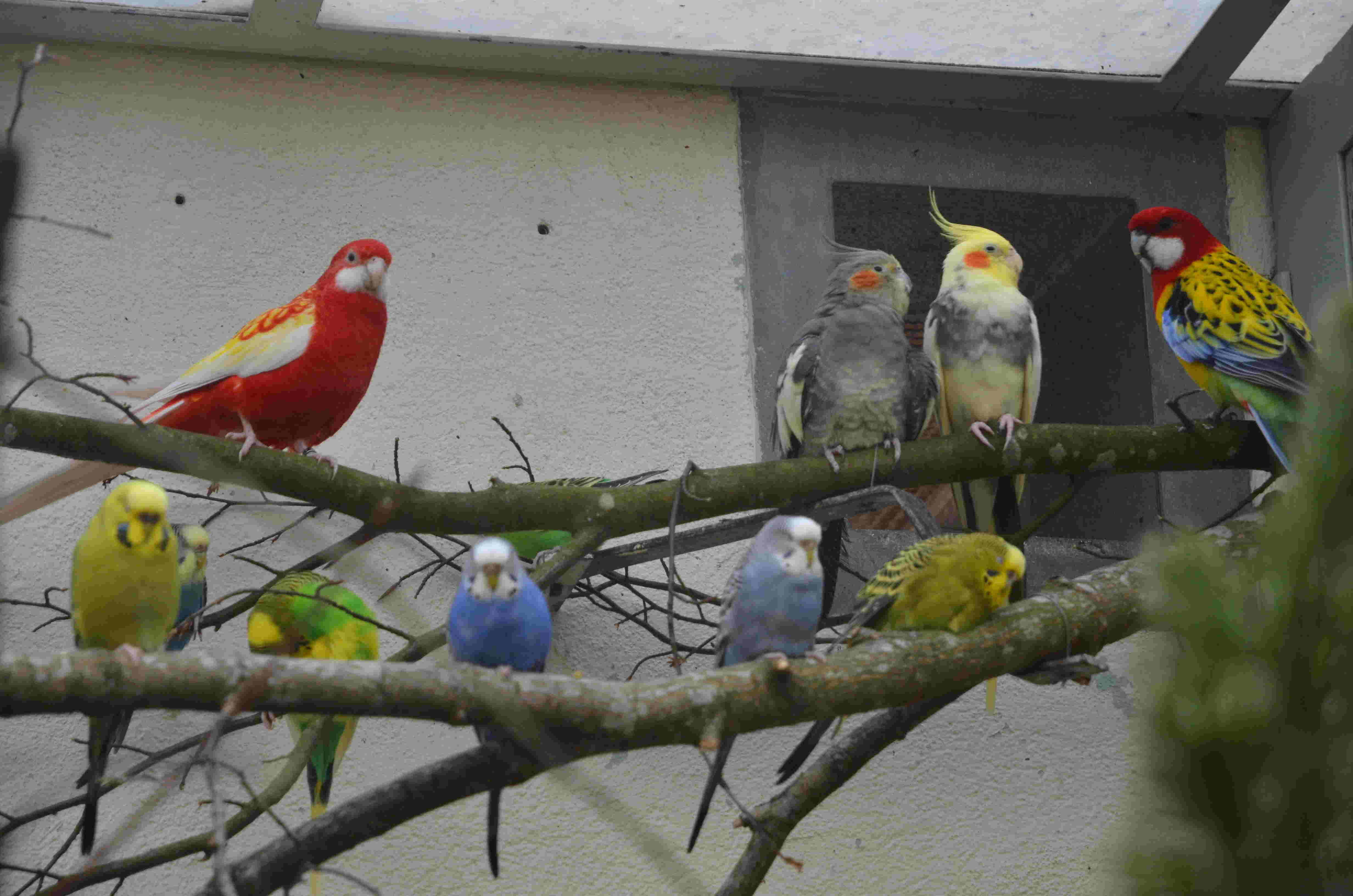 Um unsern Bestand zu regulieren, verkaufen wir Wellensittiche und andere Vogelarten. Zudem bietet unsere Volière Rat und Unterstützung bei der privaten Haltung von exotischen Vögeln.